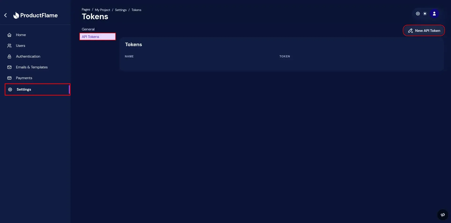 - Go to Settings > API Tokens, and then click the New API Token button.
