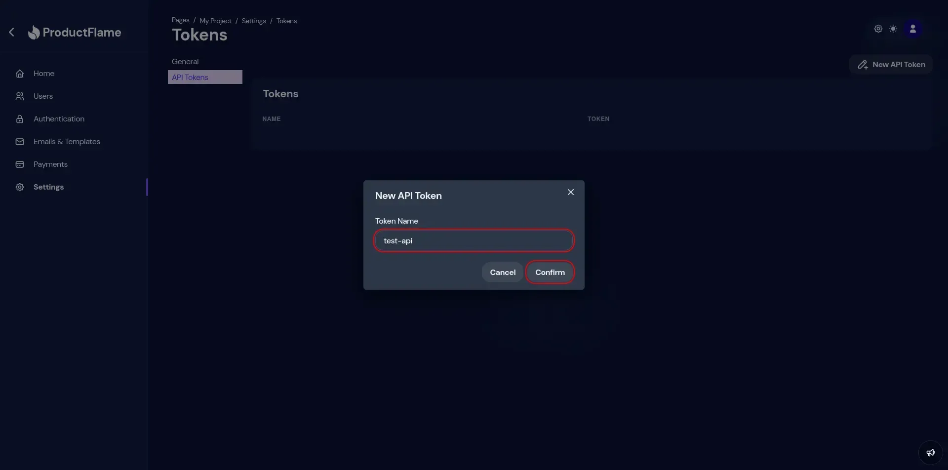 Section titled “Generate a token from dashboard”You can easily generate a token through your project interface.